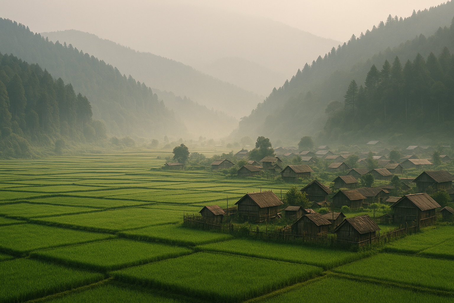A UNESCO tentative site, Ziro Valley is known for its emerald paddy fields, pine-clad hills, and the vibrant culture of the Apatani tribe.